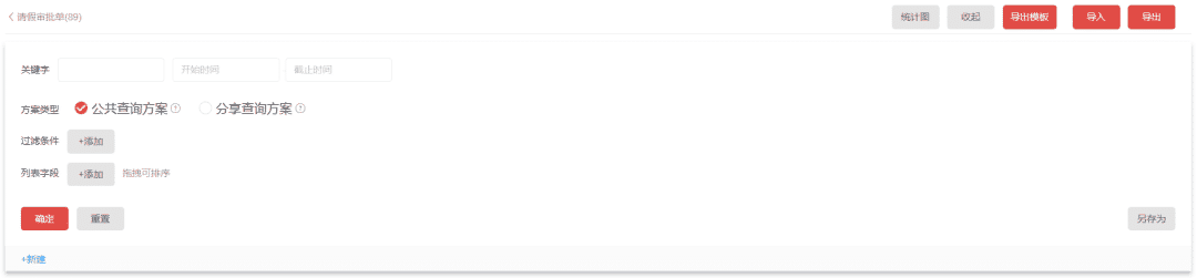 新增空間管理員為普通用戶分配查詢表單的權限,可自定義查詢關鍵字,選擇查詢時間段和方案類型,添加過濾條件和列表字段。分配給用戶特有權限,為審批數據管理者提供查詢入口