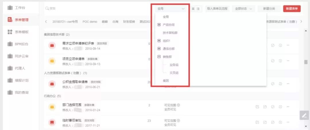 空間管理員可授權新增審批組織管理員,審批組織管理員有權管理該組織下的所有表單,實現分級管控各組織審批表單,管理權限更細分,查看權限可控制,龐大的審批表單系統也能打理得井井有條