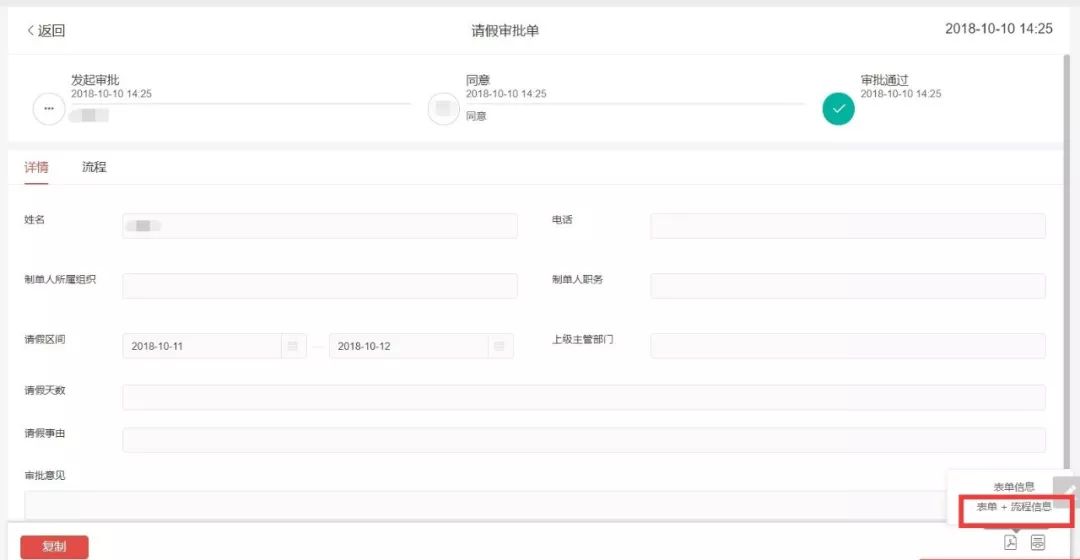 Web端將表單保存為pdf時,新增帶流程的選項,一鍵保存表單和審批流程,歷史表單數據可記錄,歷史審批流程可追尋!